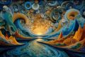 Mystical Sunrise over a Surreal Sea: A Symphony of Abstract Waves