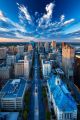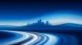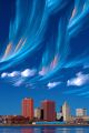 Ethereal Cityscape: Cloud Trails Reveal Skyline in Azure Dream