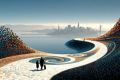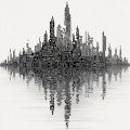 Intricate Circuit Cityscape Reflected in Tranquil Waters