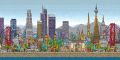 Long Beach Line Art: A Dynamic Cityscape with Whimsical Flair