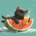 "Summer Splash: Kawaii Kitten’s Watermelon and Juice Adventure"