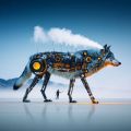 Vision of the Future: Mechanical Wolf and Human at Salt Flats