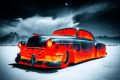 Fiery Dreams on Wheels: Vintage Car Ignites the Desert Landscape