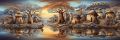 "A Fiery Horizon: Surreal Vistas and Silhouetted Figures"