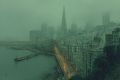 Enigmatic Veil over San Francisco: A Sage Green Canvas Art