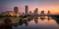 Fort Wayne's Skyline Bathed in Golden Twilight and Blue Hues