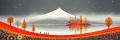 Vivid Horizon: A Journey Under Flaming Blooms By The Bridge