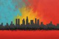 Fiery Hues Over Los Angeles: An Abstract Skyline Canvas Art
