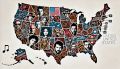 Iconic Musicians Map of the USA - A Creative Artistic Representation
