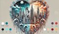 Intricate Fractal Cathedral: Mystical Metropolis in Soft Blue Hues