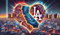 Vibrant LA Skyline and California Map Fusion in Heart-Shaped Art
