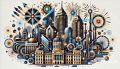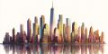 Metallic Textures and Geometric Shapes Define NY Skyline Artwork