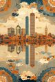 Boston Skyline Enveloped in Abstract Wax Impressions: A Dreamlike Vision