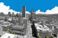 Artistic Downtown Denver Render with Iconic Mountain Backdrop