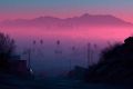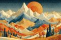 Enchanting Sunrise Over Stylized Mountain Ranges in Vibrant Hues