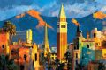 Reno Skyline Reimagined: A Fusion of Watercolor and Cubism