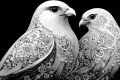 Intricate Monochrome Tapestry: Hawks Engraved in Timeless Elegance