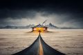 "Journey into the Surreal: Fiery Skies and Open Roads Canvas Art"