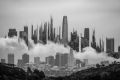 Ethereal Los Angeles: A Monochrome Skyline Amidst Whispering Clouds