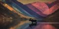 Serenity in Sunset: Moose Silhouetted Against Yukon Mountains