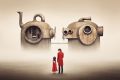 A Surreal Journey Through Dreams: Teapot Giants and Misty Horizons
