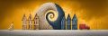 Spiraling Elegance Amidst a Surreal American Village Scene