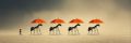 Surreal March of Ants with Umbrellas: Echoes of a Desolate World