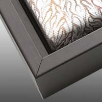 Box frame An option for a dry mounting base; a wood board with a wood frame behind to achieve the look of an unframed canvas without the canvas. The result is a sturdy decorative piece with a matte or shine finish. A choice of depths is generally available.