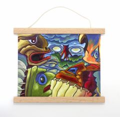 | Magnetic Poster Hangers consist of four thin pieces of wood, with each pair being magnetized together. All you have to do is place the wood piece with a magnet on a flat surface, magnet side up, and position your artwork on it. Then once the artwork is centered, place the second piece of wood on top to magnetize the art in place. Make sure the wood with the hanging strap is on the top side of your artwork. And voila, as simple as that you have a fully ready display! Use the sturdy hanging strap to hang on a nail, hook, pin, or any method you prefer.