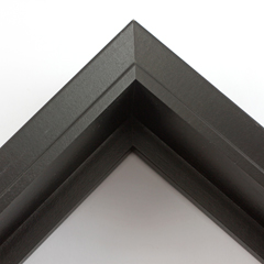 This deep, L-shape floating canvas frame features a glossy black, textured face and deep, 1.75 " rabbet. The 45 degree angle of the face creates depth around the mounted canvas.