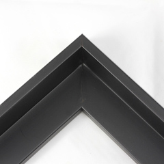This L-shaped modern canvas floater frame, features a black smooth curved wall.