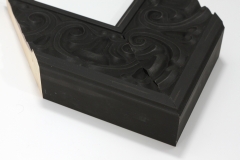 This stone-like frame appears in a black finish featuring an extra wide 4-7/8 " profile. This extravagant frame features an ornate carved texture profile that is perfect for a dramatic and classy appearance.