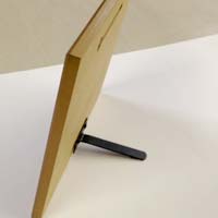 | Uni-frames A frameless display product that holds the artwork between two panes of glass or acrylic. Small cleats clip the panes together, and are held in place with string or wire threaded through them from the back. The result is a "floating" artwork that still protects the image. |